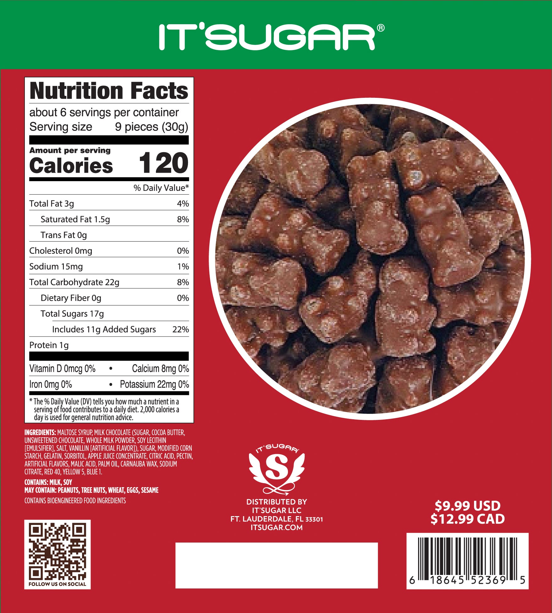 Jingle Bears. Jingle Bears. Jingle all the way! Enjoy the holiday edition of everyone’s favorite choc-dipped gummy bears. Dinglebearies! This sweet combination is sure to make anyone jolly. 6oz (170g)
